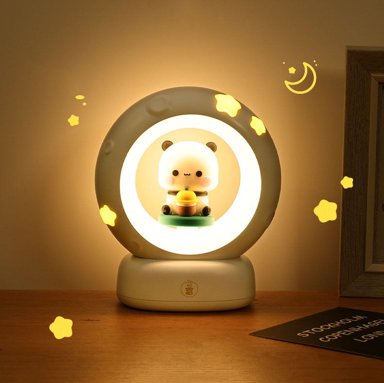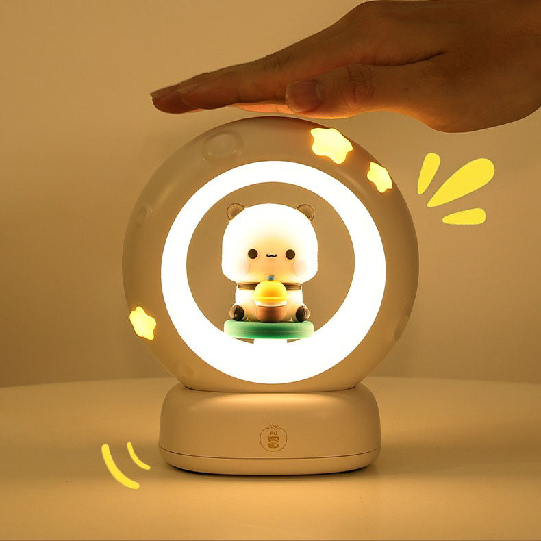The Bubu & Dudu Bear Night Light brings cozy vibes and warm lighting into any space, featuring a soft-glow LED ring wrapped around an adorable mini bear holding a drink — perfect for bedrooms, nurseries, or desks.