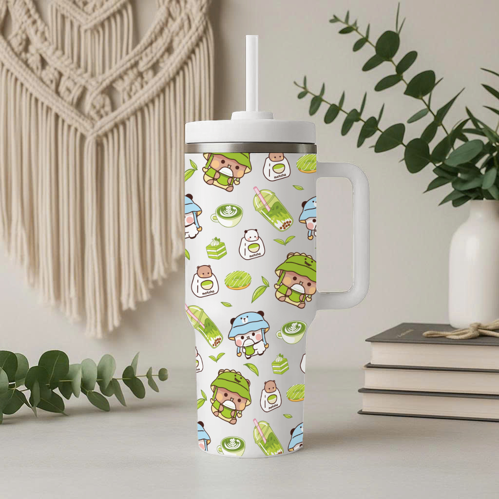Cute Kawaii Bubu Dudu Matcha Tumbler – Insulated Cup with Handle & Straw