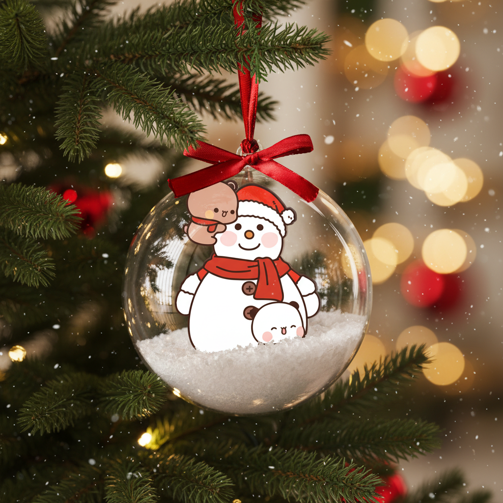 Featuring the adorable bear duo dressed in festive holiday outfits 🎅🎄, these ornaments bring joy, warmth, and a touch of kawaii charm to your holiday décor. Each bauble is filled with faux snow ❄️ for a cozy winter feel and comes with a bright red ribbon 🎀, ready to hang right out of the box.